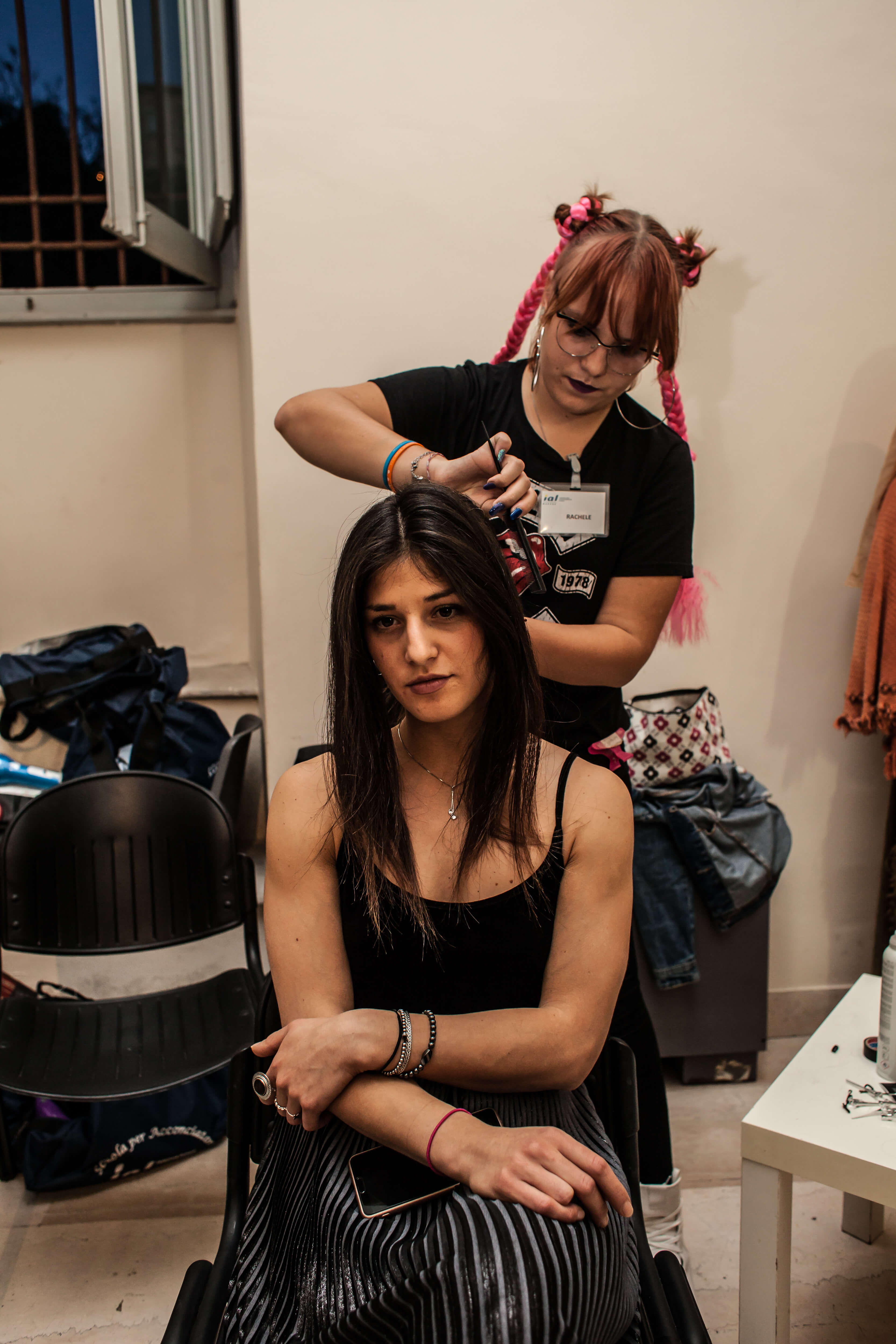 A coordinare i ragazzi nel backstage era presenti le due docenti dei corsi di Estetica, Roberta Picciafuoco e di Acconciatori, Silvia Piersimoni.