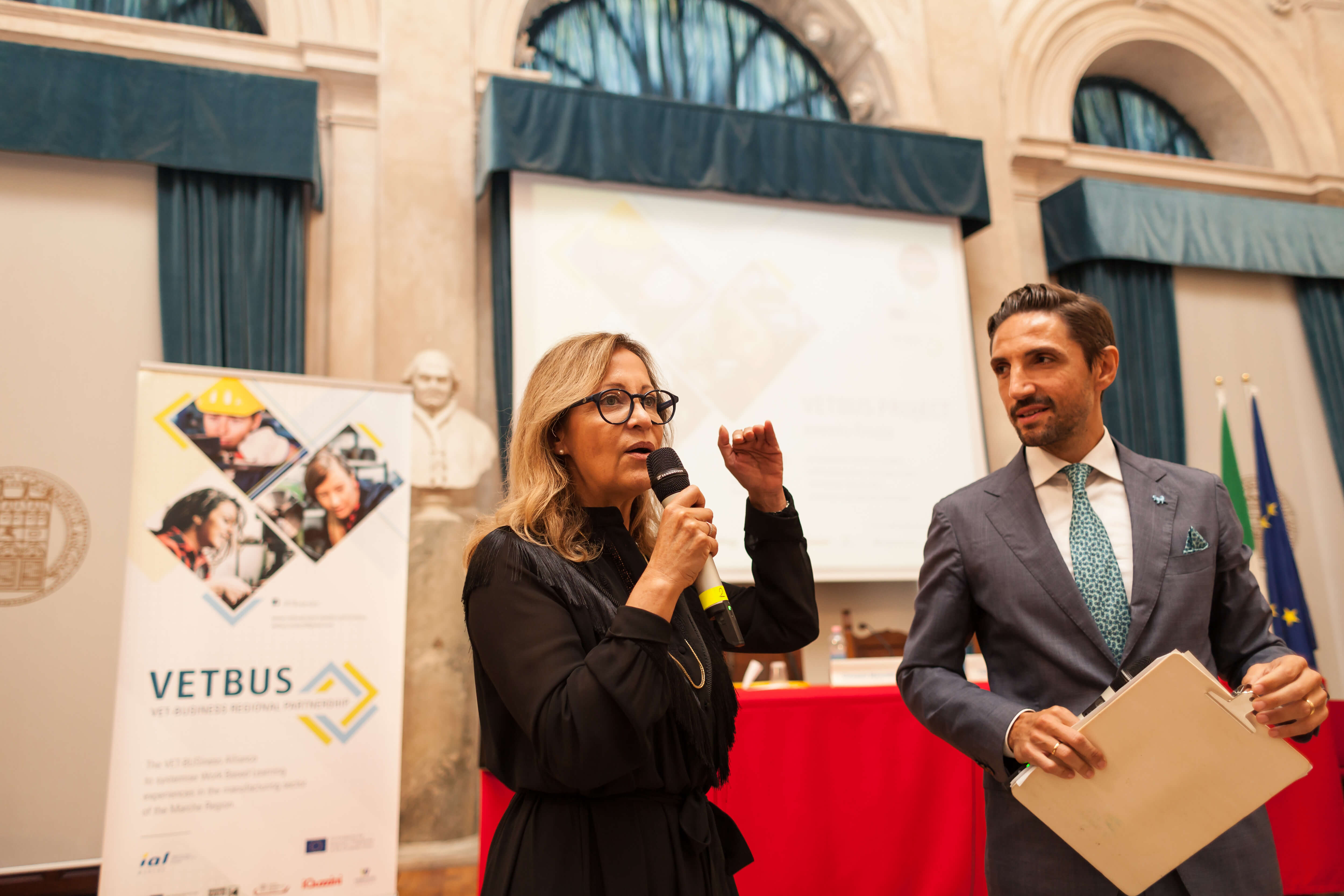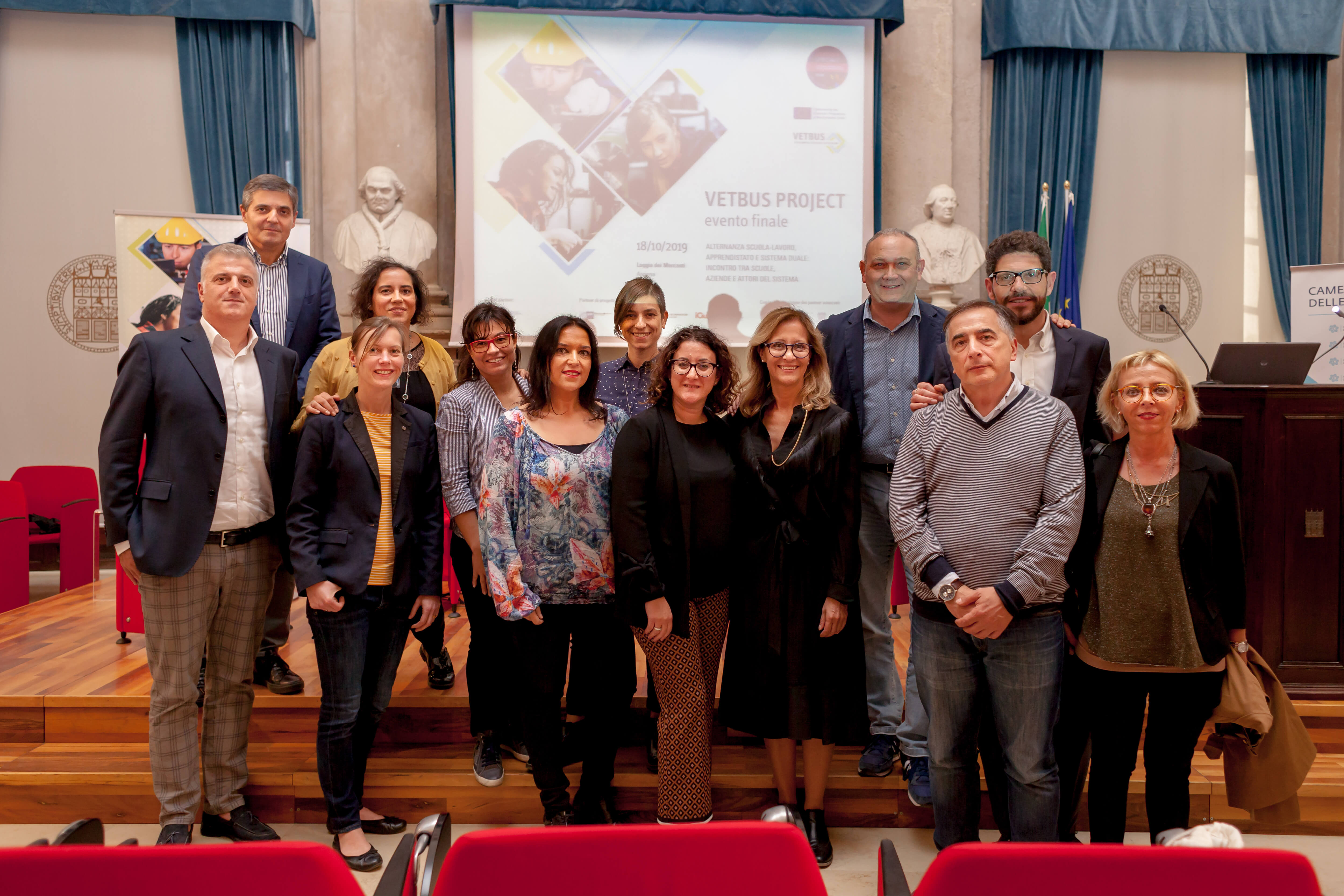 Venerdì 18 ottobre la Loggia dei Mercanti di Ancona ha ospitato l’evento conclusivo di questo progetto. La giornata è stata suddivisa in due parti: la mattina ha visto protagonisti gli studenti e le aziende, con le testimonianze di Valentina Petrini (IAL Marche srl), Giorgio Corvatta (iGuzzini illuminazione) e dei ragazzi del corso. In questa prima parte è stata illustrata l’esperienza di apprendimento nel contesto aziendale realizzata durante il corso per operatore meccanico avviata in seno al progetto VETBUS. Il pomeriggio, per la parte istituzionale, hanno preso la parola: Gino Sabatini (Camera di Commercio delle Marche), Massimo Rocchi (Regione Marche) e Valentino Parlato (IAL Marche srl) che ha analizzato i risultati del progetto VETBUS con attenzione agli impatti sul territorio. Protagonisti del dibattito “Il futuro del Sistema Duale nella Regione Marche” sono stati Mario Lazzari (Regione Marche), Carlo Cipriani (Confindustria Marche), Cristiana Ilari (CISL Marche), Enrico Santini (iGuzzini illuminazione) e Manuel Pierdominici (IIS Corridoni di Corridonia).